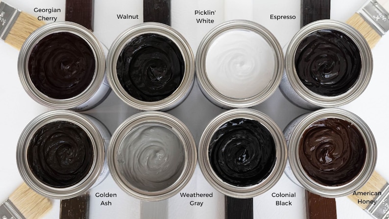 First up is No Pain Gel Stain which is an oil based stain and it comes in the following colors: walnut, espresso, weathered gray, colonial black, picklin’ white, American honey and golden ash. This is a heavier stain but one that still lets the wood grain show through.