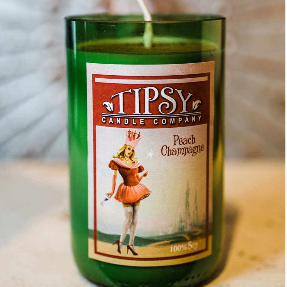 Tipsy Candle Company was founded in 2012 by the motivation to repurpose empty wine bottles into something renewable and reusable. They hand pour all their candles with a signature soy wax, and infuse with custom fragrances. Each scent has a custom label that shares a themed story.