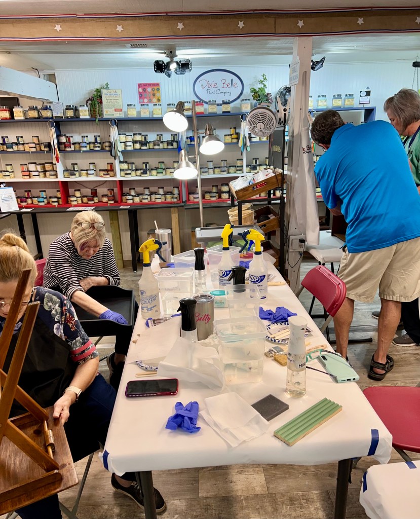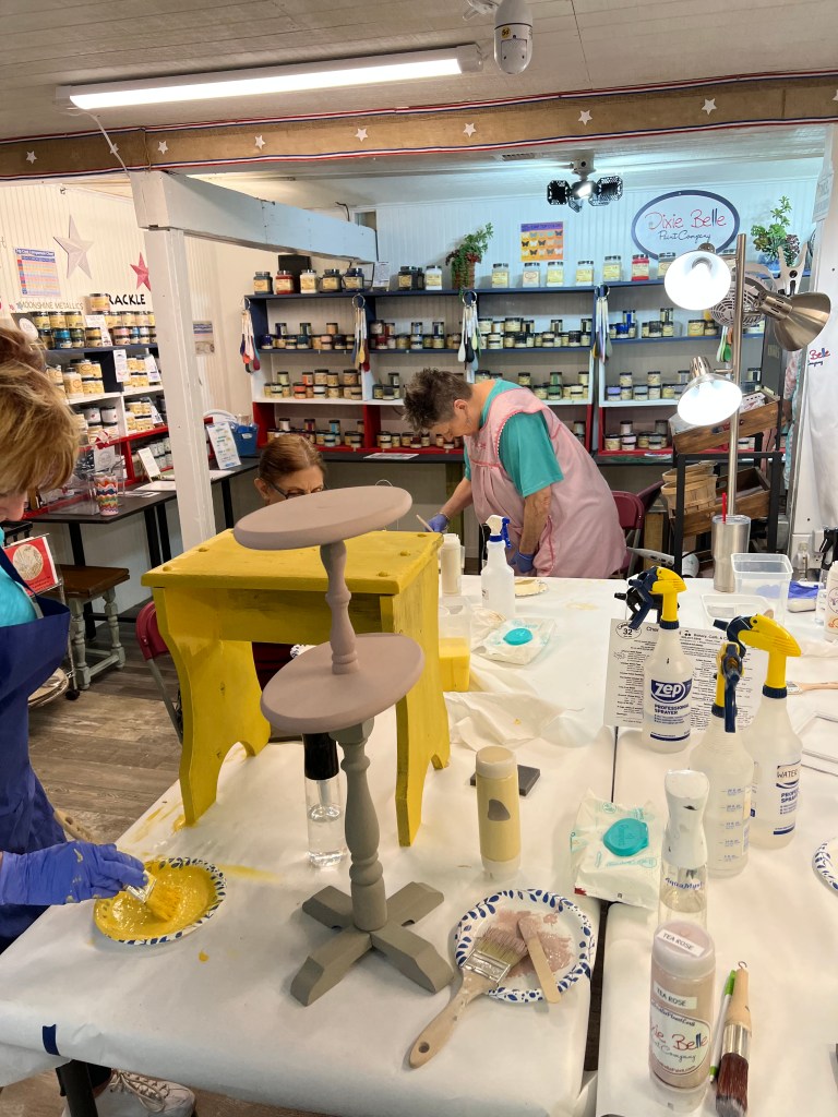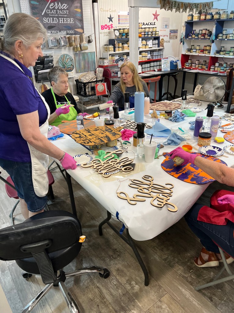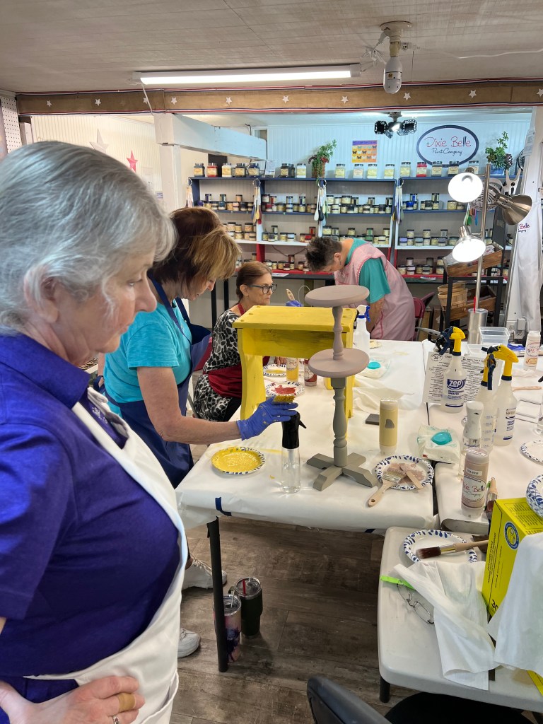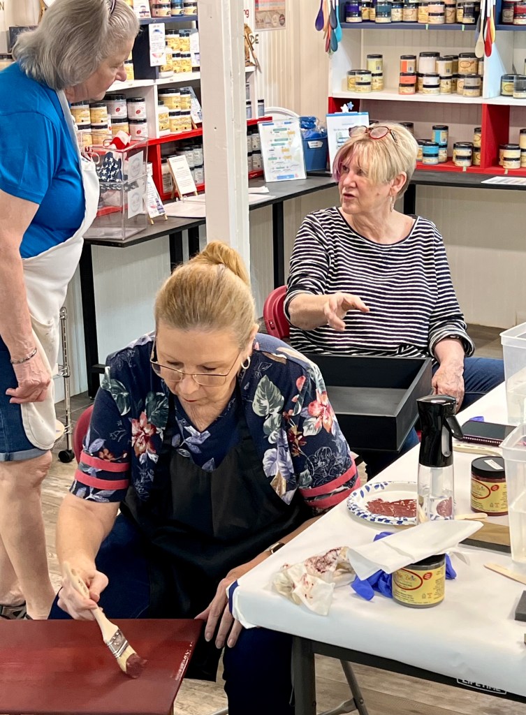 We have classes at least once a month on painting and restoration techniques in our store. We now have 3 different classes with many more topics coming this year. We have a furniture painting and repair class. You will learn how to clean your furniture project. You will also learn to repair, paint, and seal it. We have a class where you can learn how to apply transfers and decoupage papers to your project. Our newest class teaches you how to transform an old leather belt. You will learn to paint it and turn it into a purse strap. Check our class schedule for more information.